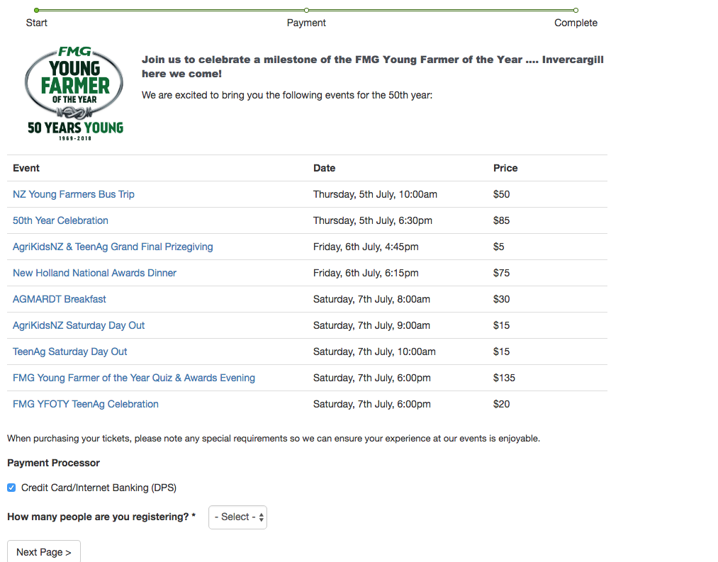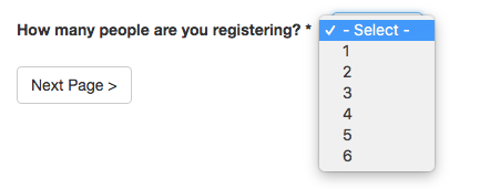 User selects number of folk they are registering and Conditionals kick in to show the necessary fields